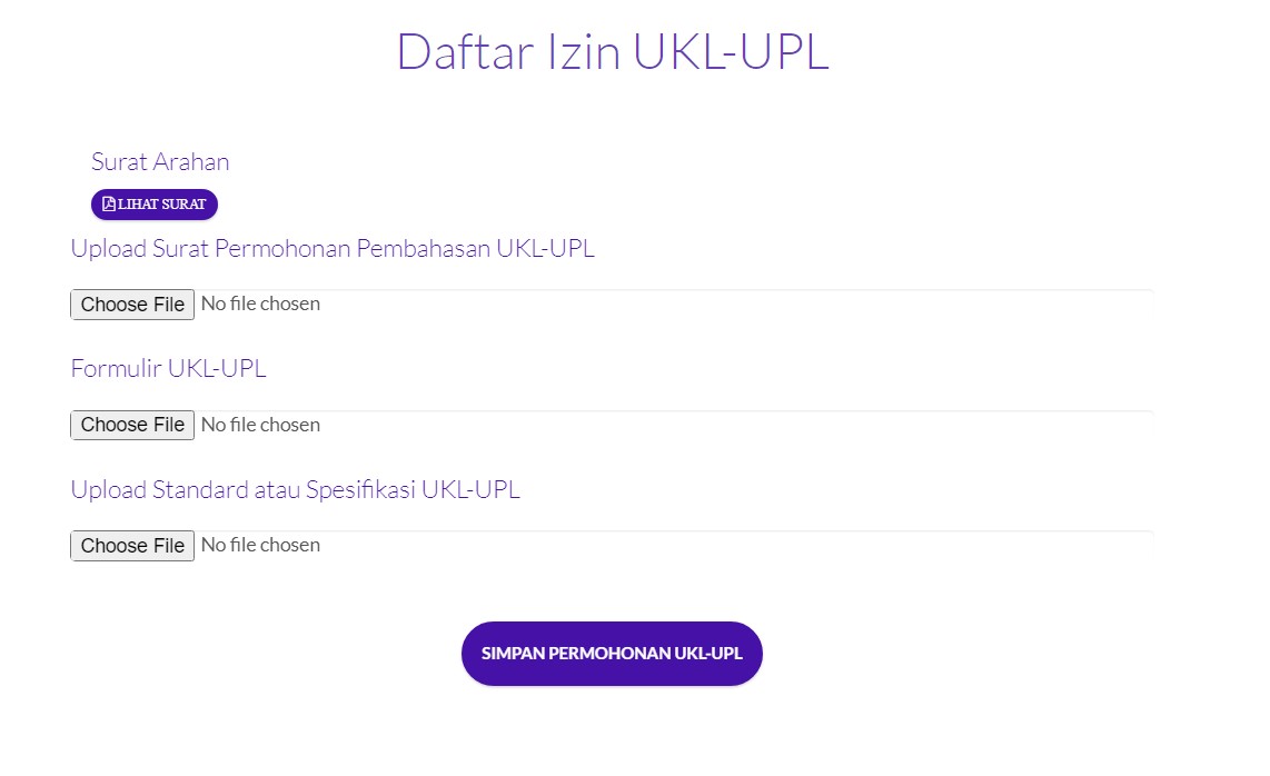 Maka akan tampil bagian Pengurusan Izin Bagian UKL-UPL